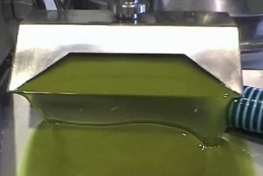 攪拌混和 將絞碎的橄欖果肉倒入不鏽鋼槽內攪拌混和,鋼槽的溫度要控制在25度內,這就是俗稱的「冷榨」 |  |