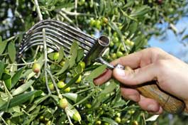 橄欖油製作過程▲返回 | 製造流程採收並篩選果實 透過分離機將葉子及不合格的果實分離出來,因為葉子帶有苦味,而過小或蟲蛀壞的果實會影響橄欖油的品質 |  |