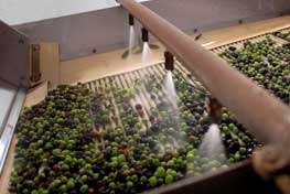 清洗果實髒污 將果實表面灰塵、雜質及髒污清洗乾淨,這是非常重要的過程,確保消費者能食用更乾淨純淨的橄欖油 |  |